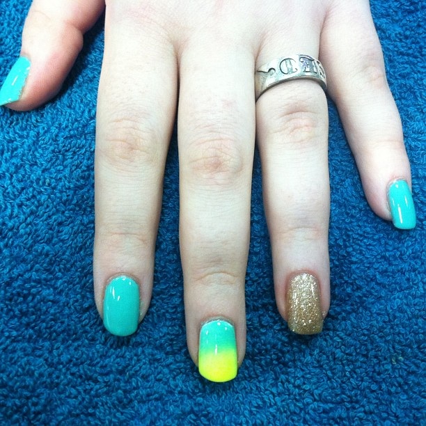 Gold Yellow And Turquoise Ombre Nails By Hiimgaymolly On Deviantart