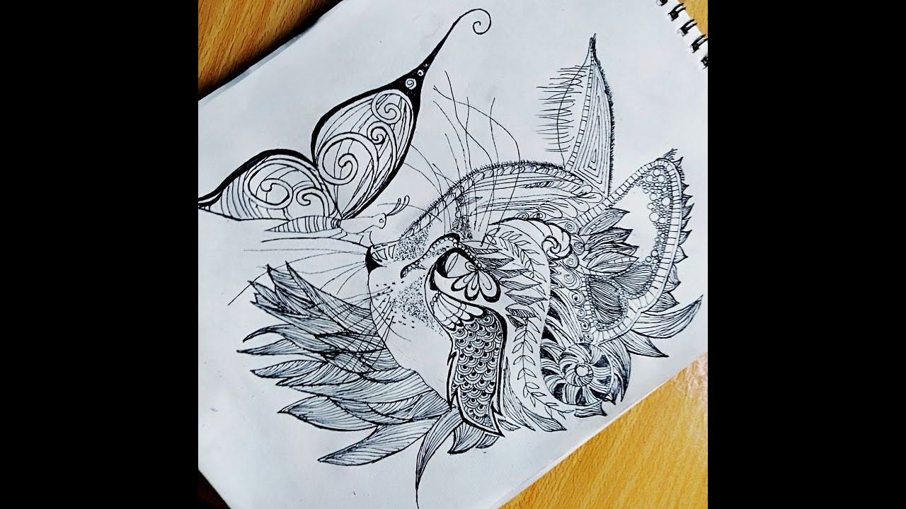Mandala Art Animal Zentangle Inspired Cat And Butterfly Time Lapse Doodle Art Youtube
