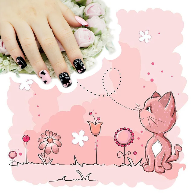 24pcs Set Fake Nails Kids Cat Pink False Nail Tips Cartoon Short Fake Cute Nails Art Women Children Kids Nail Toy Decoration Buy Cheap In An Online Store With Delivery Price Comparison