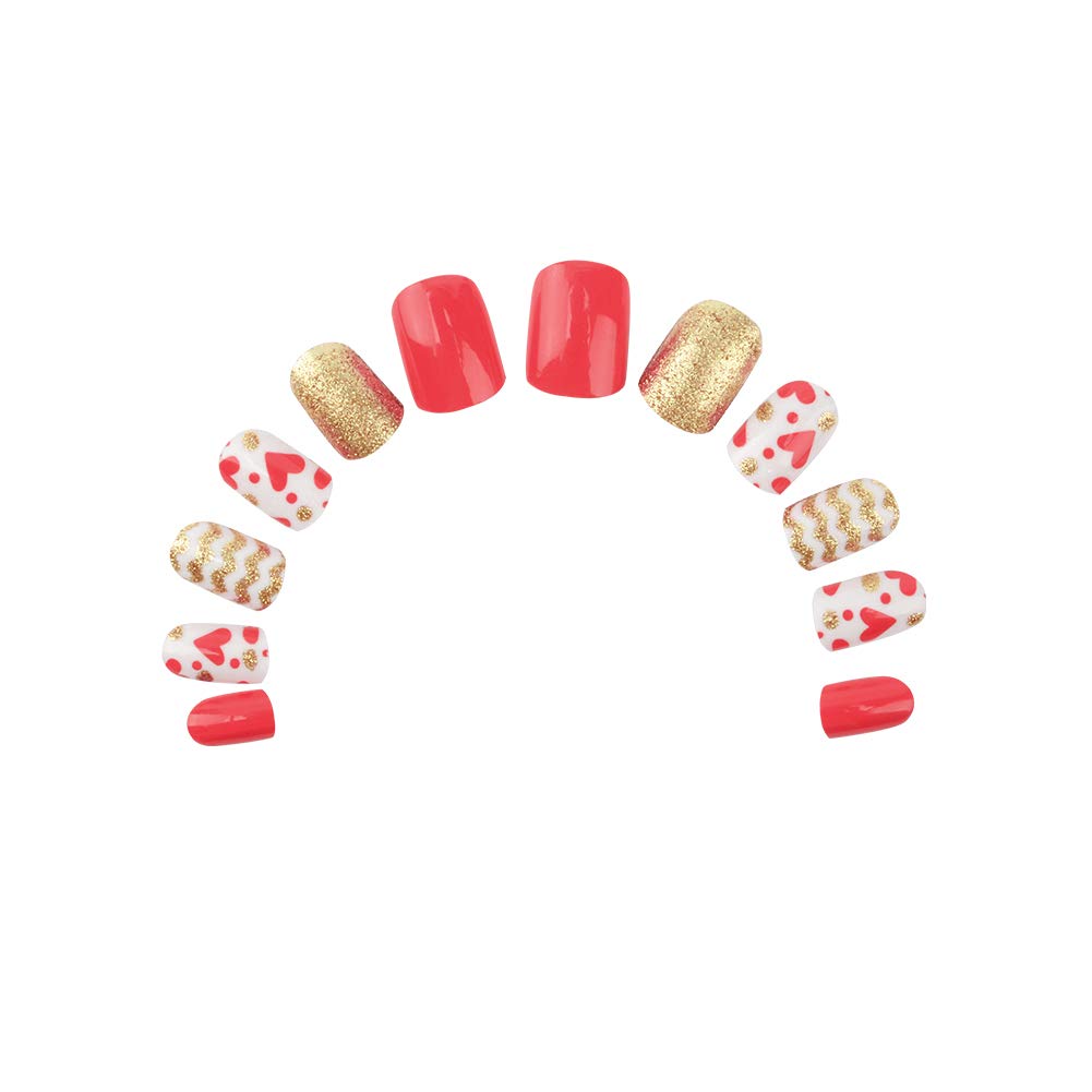 Amazon Com 24pcs Children Nails Press On Pre Glue Full Cover Red Gold Cute Kawaii Short False Nail Kits Gift For Kids Beauty