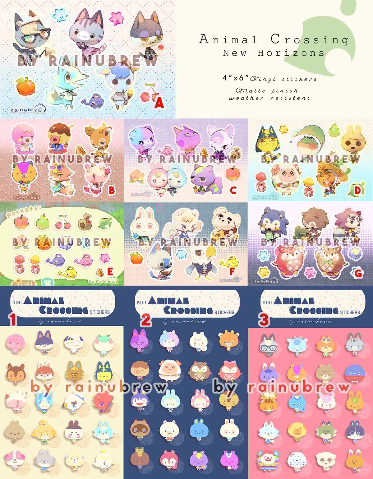Animal Crossing New Horizon 6x4 Inch Sticker Sheets Rainubrew
