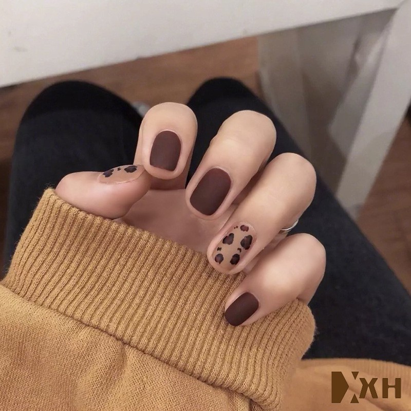 24pcs Set Matte Leopard Coffee Jump Color Short Fake Nails Finished Wedding False Nail Art Shopee Philippines