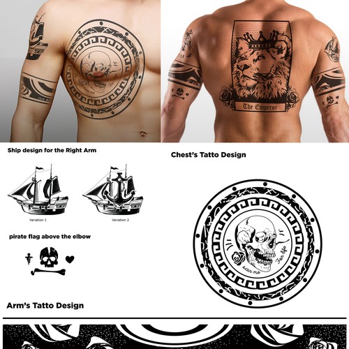 Arm tattoos 3 sheets Front torso tattoos 4 sheets Back torso tattoos 2 sheets Full set.