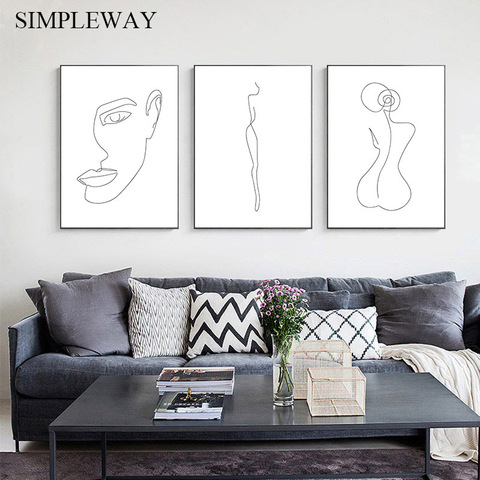 Wall Art Canvas Painting Abstract Naked Woman Line Drawing Prints Feminine Nude Figure Line Poster Home Room Decor Buy At The Price Of 4 98 In Aliexpress Com Imall Com