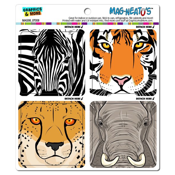 Safari African Animal Faces Close Up Zebra Elephant Tiger Cheetah Mag Neato S Tm Car Refrigerator Magnet Set Walmart Com Walmart Com