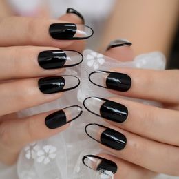 Blackwhite False Nails Short Personalized For Girls Newair Fake Nails