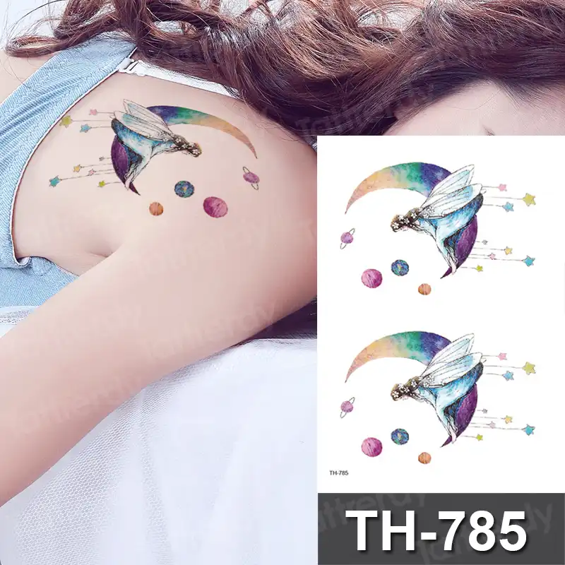 Moon Tattoo Back Women Girls Sexy Temporary Tattoos Waterproof Angel Models Thigh Tattoos Watercolor Body Sticker Breast Legs Temporary Tattoos Aliexpress