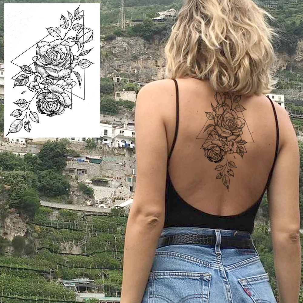 Geometric Flower Temporary Tattoos Sticker Realistic Fake Waterproof Black Rose Tatoos For Women Girl Body Art Arm Legs Tattoo Temporary Tattoos Aliexpress