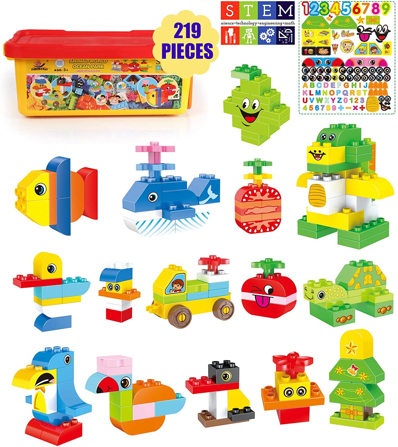 Exercise N Play Stem Building Block Set For Toddlers Diy Animals Construction Large Building Bricks Kit With Storage Box Educational Preschool Learning Toy Gift For Kids Boys Girls 219 Pieces