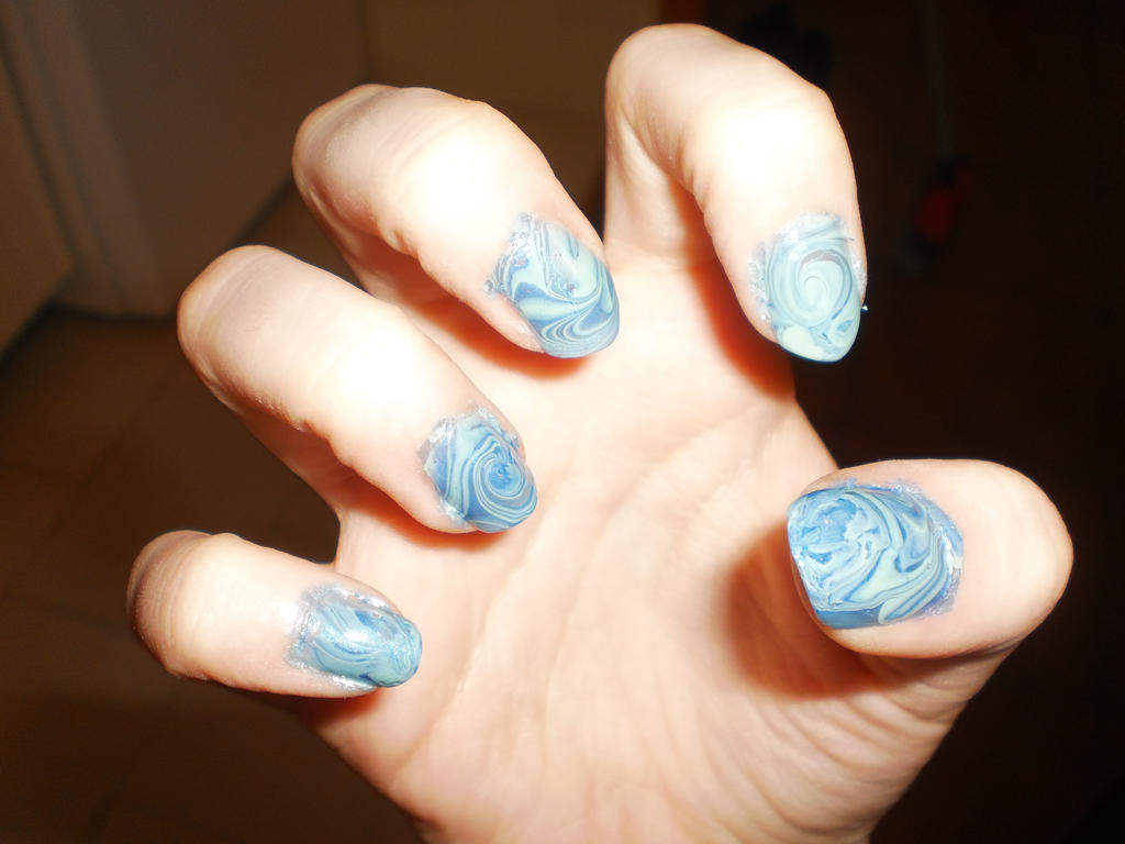 Blue And Light Blue Water Marble Nail Art Right 2 By Dreamband On Deviantart