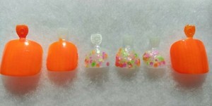 Neon Orange Pink Glitter Accent Artificial Toe Nail Pedicure Set Sunshine Kiss Ebay